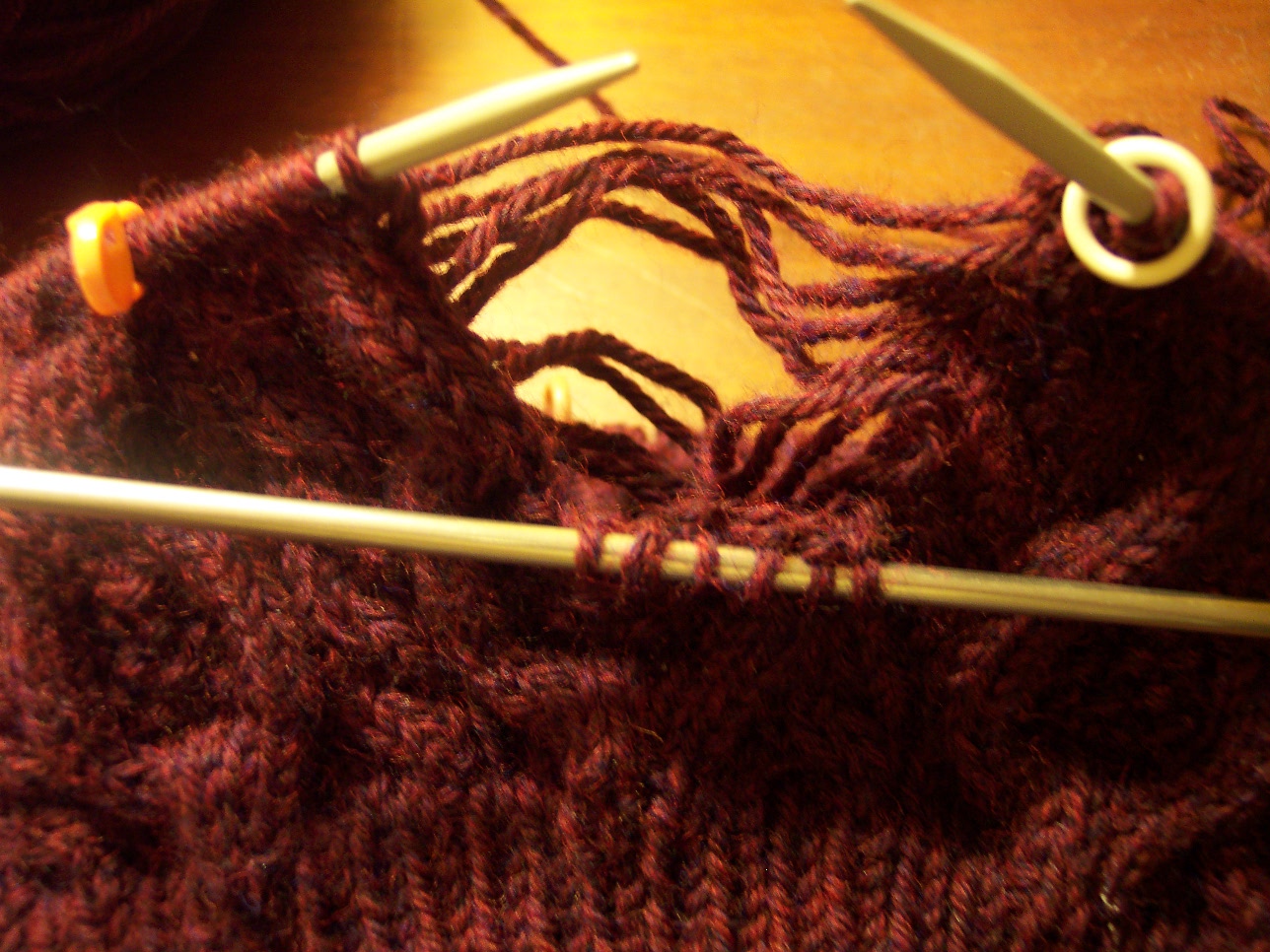 I'd also like to point out that SPM suggests using a crochet hook to pull up the dropped stitches. I didn't wimp out and use a hook. I actually re-knit the stitches. I'm pretty sure this makes me more hardcore than Stephanie Pearl-McPhee.