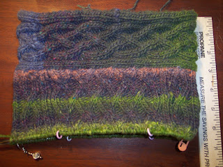 Two more to go. I'm thinking the knitting might be done next weekend. Then all that will be left will be the part where I cajole, flatter, and badger my mother into helping me sew a lining. That should only take about a month.