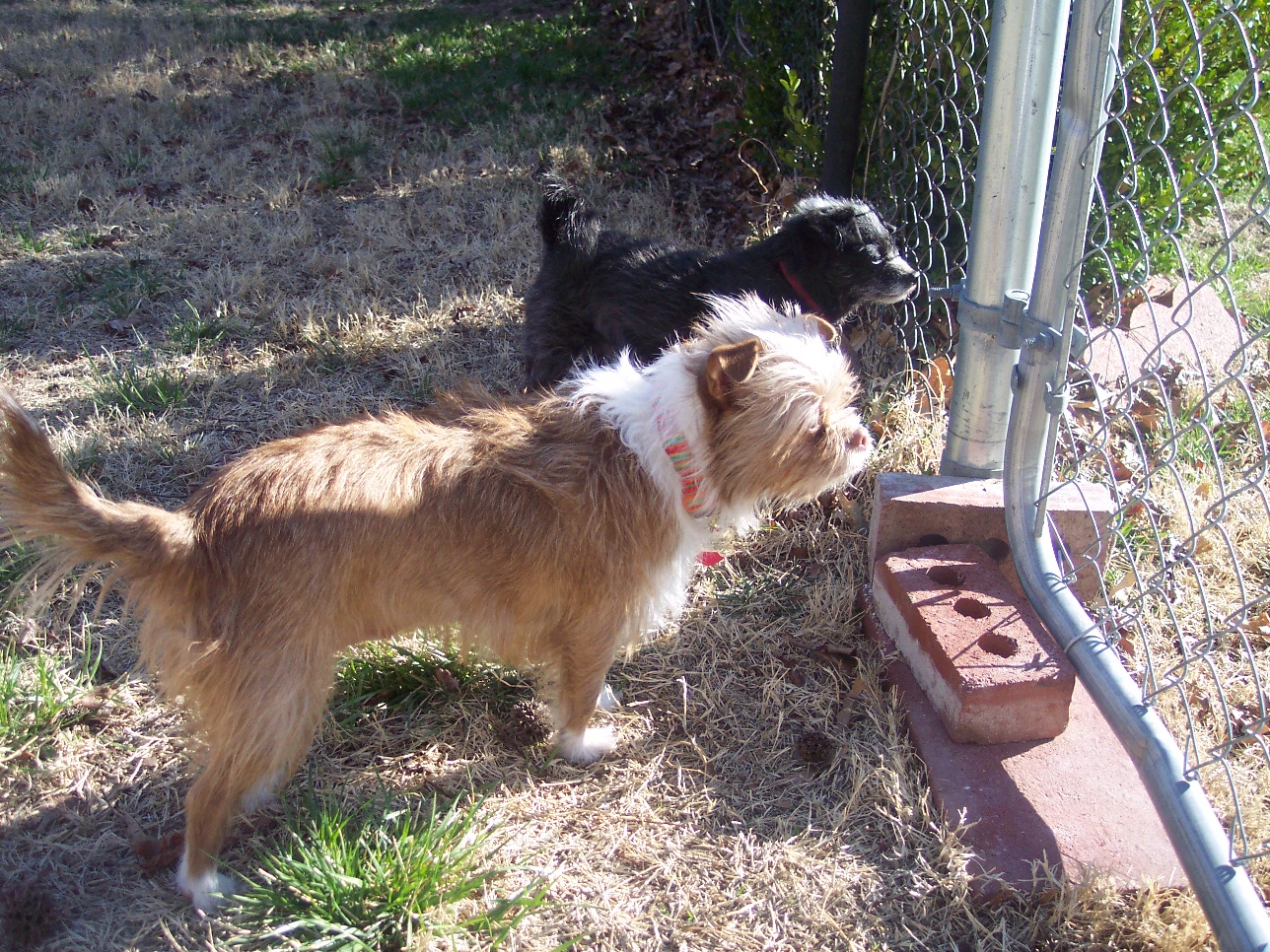 The family bonding could not possibly be going any better. We've had a few snippy moments, but nothing at all concerning. In fact, I'm completely charmed by the gentle, restrained growling from both dogs that is so different than the all-out "I'm gonna rip your face off!" snarling that I'm used to when Brewster faces a stranger. The puppy gate came down on their third day together--because they took it down. When I tried to leave the next day with the gate in place, I sat in my car in the garage with the car door closed and motor running, and I could still hear howls of such heartrending sadness that I couldn't stand it. The gates came down for good. They've both done an excellent job of setting their limits and then forgiving each other when they're crossed. They don't love each other yet, but they are becoming friends. Bert has a bad habit of shoving Brewster out of the way when she wants something he has, and Brew has a bad habit of trying to hump Bert that seems to be fading as he gets used to her presence and as Bertie gets further and further past her recent pregnancy and spay. Families just have to overcome these little character flaws.